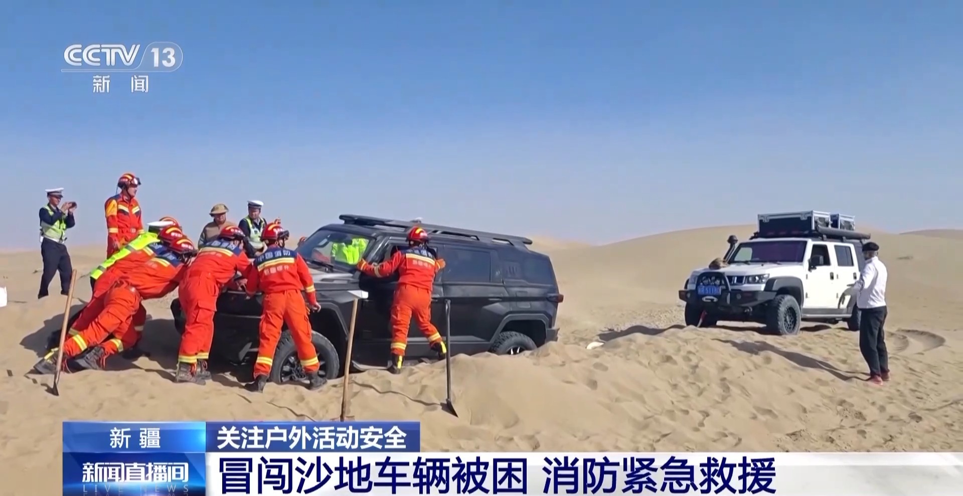 接到报警后,救援人员赶赴现场救援。经过救援,被困车辆已安全获救。经详细调查,两名游客开车时被壮丽的沙漠风光所吸引,不小心离开道路,撞上路面。噢,沙滩。由于没有沙漠驾驶经验,车子最终陷在沙子里。